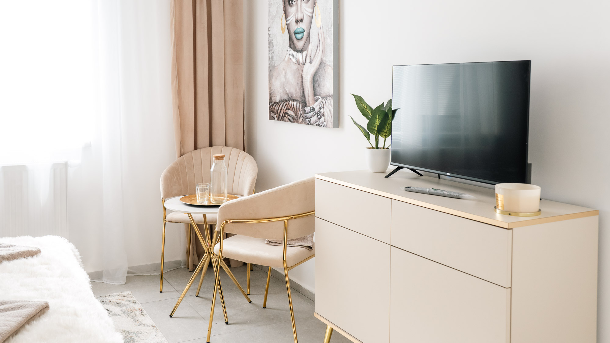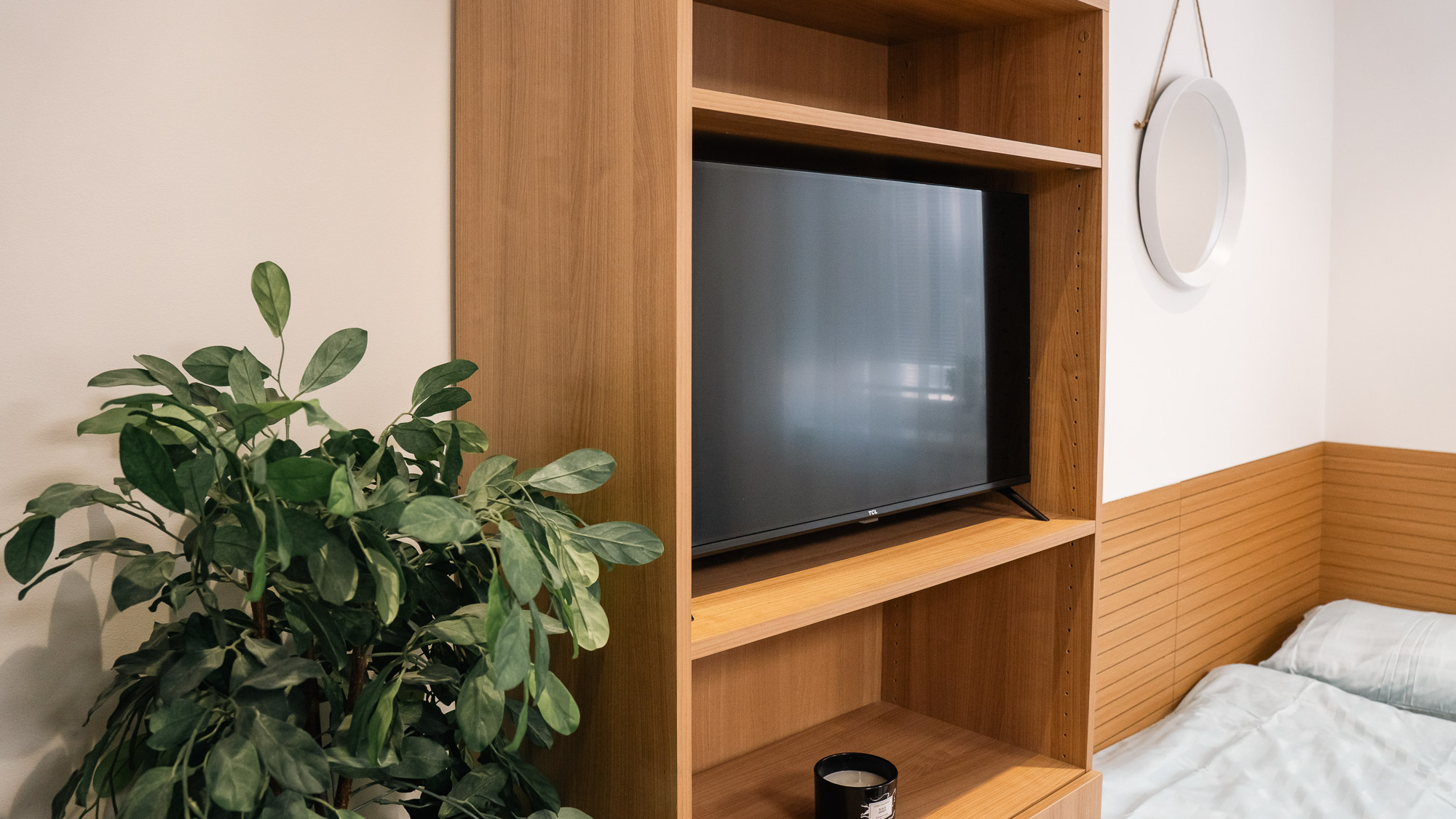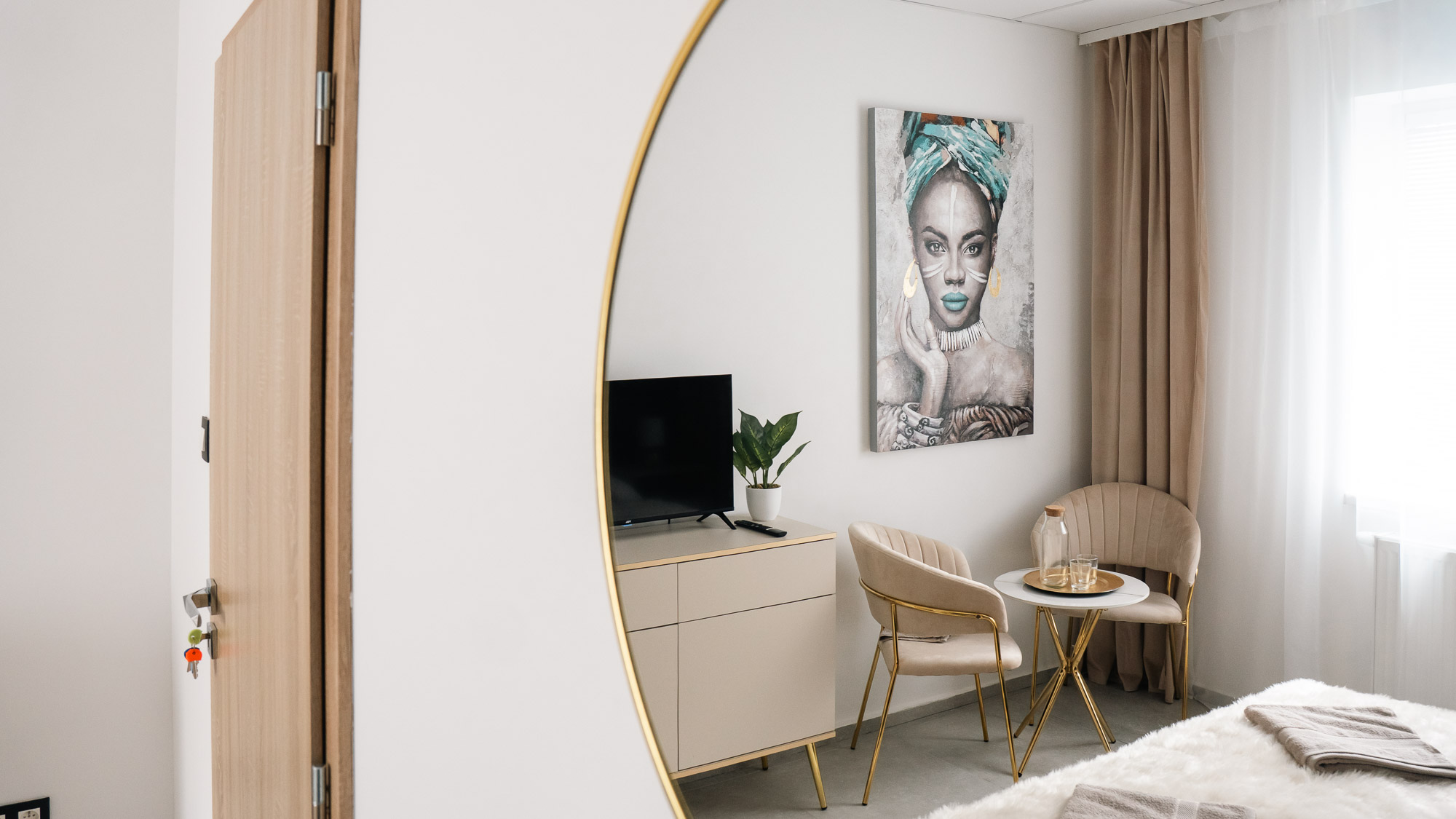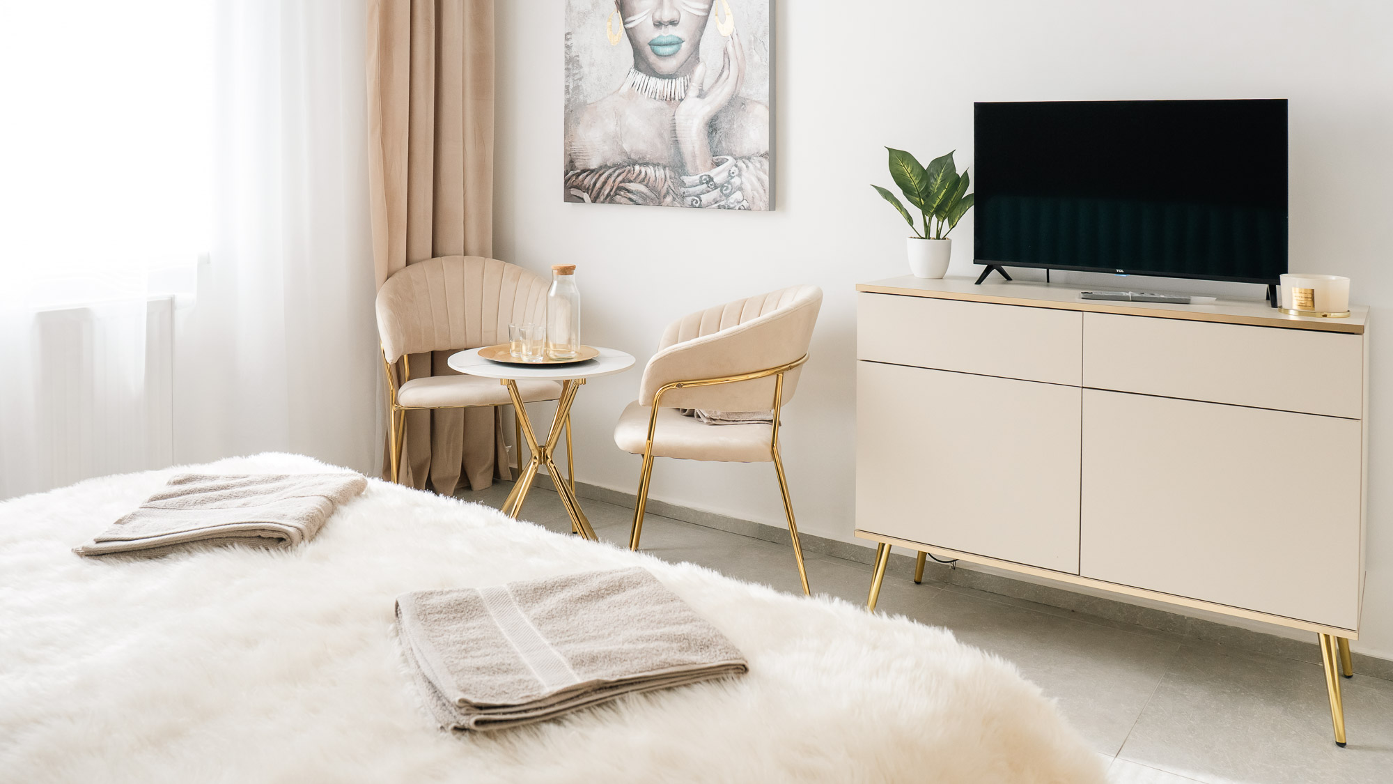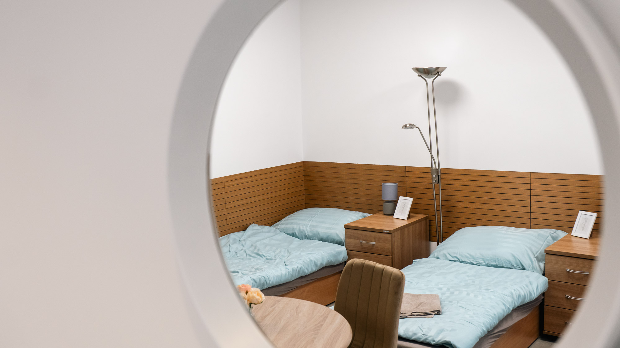 Flexibilná voľba pre rodinu či dvojicu kolegov: manželská posteľ, prístelka – rozkladacia posteľ + prístelka – pohovka. TV, klimatizácia a Wi-Fi v izbe; kúpeľňa a toaleta spoločné.
